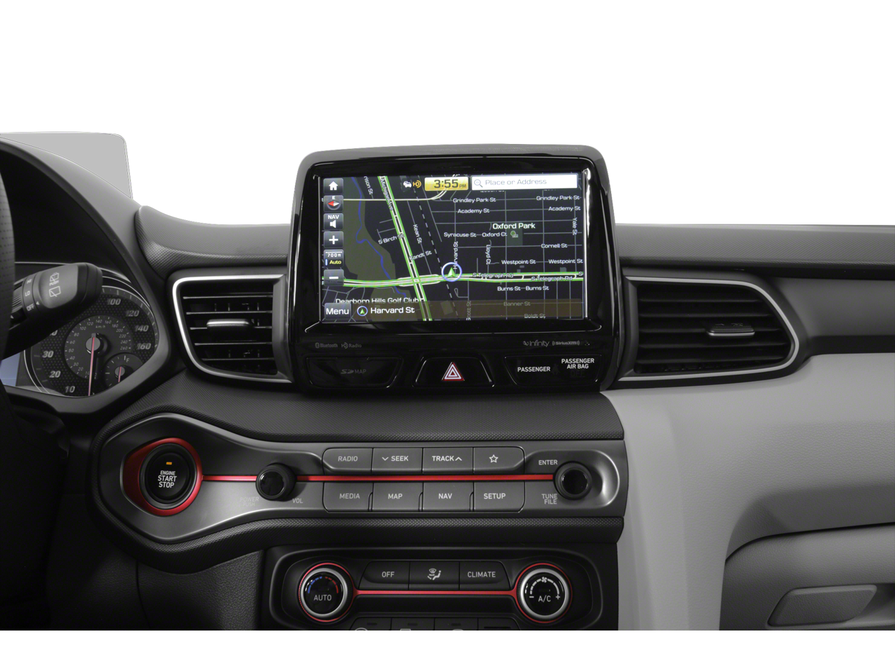 - Radio: AM/FM/SiriusXM 8" Display Audio -inc: Apple CarPlay, Android Auto, Infinity premium audio w/8 speakers including subwoofer and external amp, Blue Link (Gen 2) connected car system, active sound design, dual charging USB ports, Smartphone/MP3 auxiliary input jacks, Bluetooth® hands-free phone system w/voice recognition and speed-sensitive automatic volume control